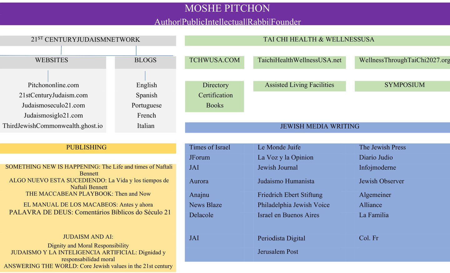 Moshe Pitchon é escritor, ensaísta e comentarista público. Seu trabalho explora a relação entre judaísmo, responsabilidade moral, liderança e os desafios políticos e culturais do século XXI.